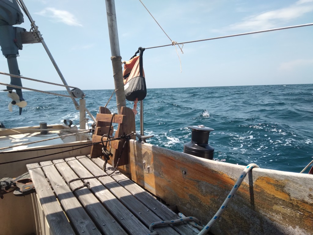 Very decent winds, water depths of 50-100 feet, very shallow for ocean sailing, the sea state reminded me more of Lake Erie than the Atlantic Ocean.