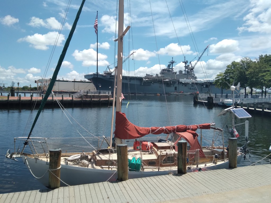Preparing for another ocean passage I waited on conditions to improve in Norfolk… a busy military port.