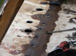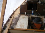 In the cockpit numerous deck fills were above what is to be the quarter berth, patches were cut and the holes were filled. I removed the ill placed deck fills with a 5 second blast from a propane torch, this heated the steel and the 5200 let go. On the on the aft of the deck numerous holes had been cut for various wire-way arrangements, all failures, these too had to be patched.