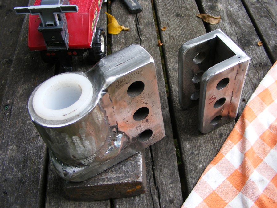 Pc on left is a 3″ pc of 2 1/2″ sch80 welded to a”L” cut from 1 1/2 plate