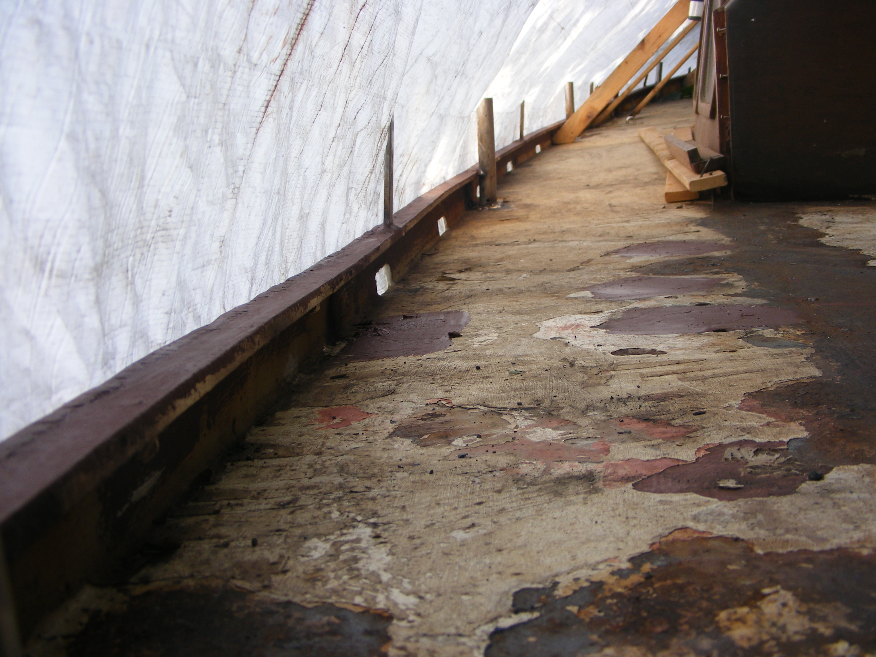 Deck rough but bulwark on the mend, new brackets and stanchion bases shown